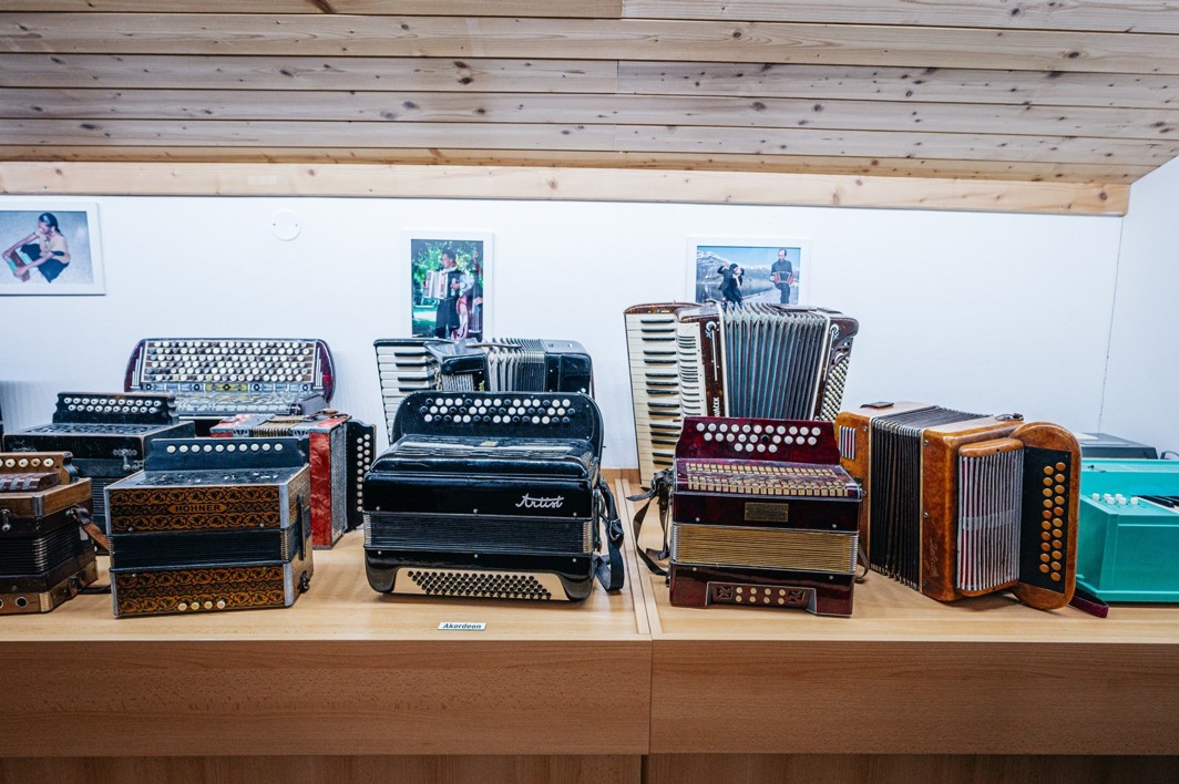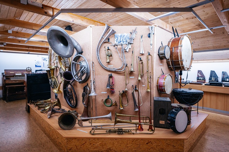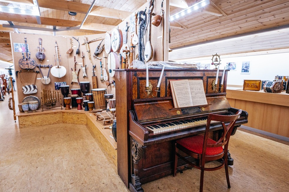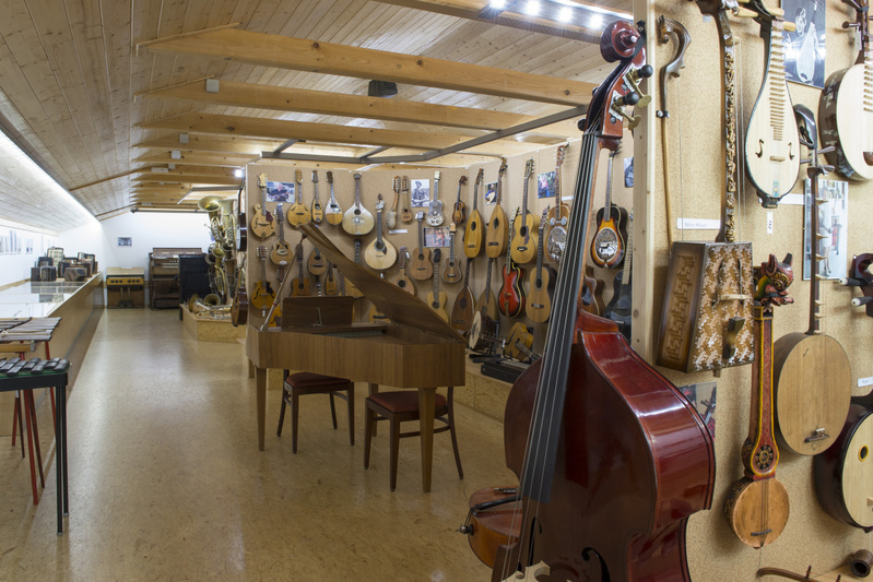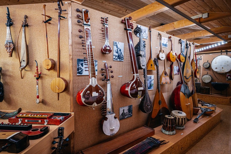 Vedle exponátů evropského instrumentáře, jako jsou housle, violy, akordeony, kytary, mandolíny, citery a mnoho dalších, je vystavena celá řada exotických nástrojů, například čínské dvoustrunné housle erhu, indický sitár, různé africké bubínky, tibetská trubka rkang dung, krásně zdobená harfa saung gauk z Barmy aj.
